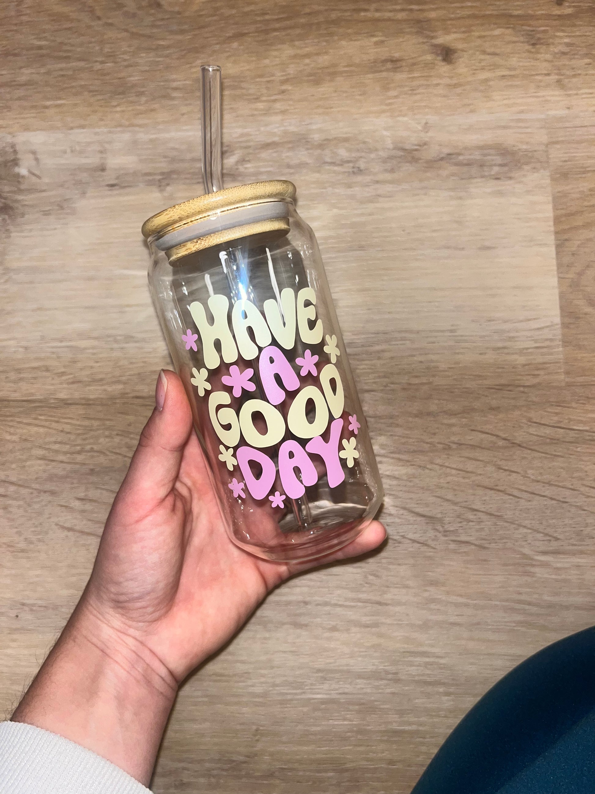 Starte gut gelaunt in den Tag mit meinen stylischen Trinkglas „Have a Good Day“!